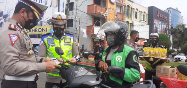 Sebelumnya, Ditlantas Polda Lampung membagikan paket sembako dan minyak goreng kepada pengendara tertib berlalu lintas di Tugu Adipura, Tanjungkarang, Bandar Lampung. Selain itu, juga dibagikan paket masker dan hand sanitizer.