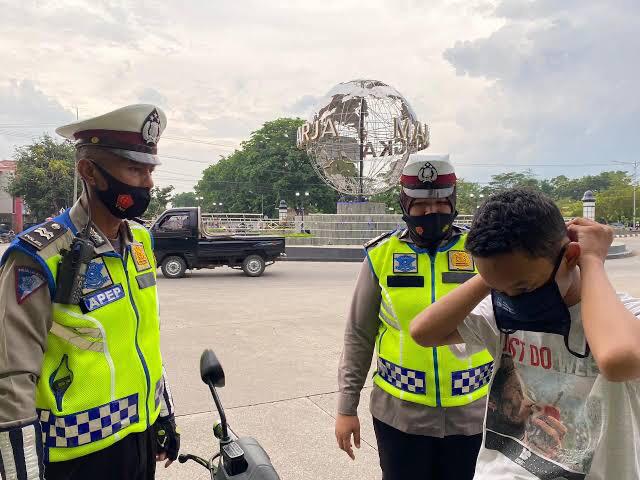 Selain mengedukasi soal keselamatan berlalu lintas, Polisi juga melakukan kegiatan bakti sosial dengan membagikan sembako dan masker serta melaksanakan sosialisasi 3M.
