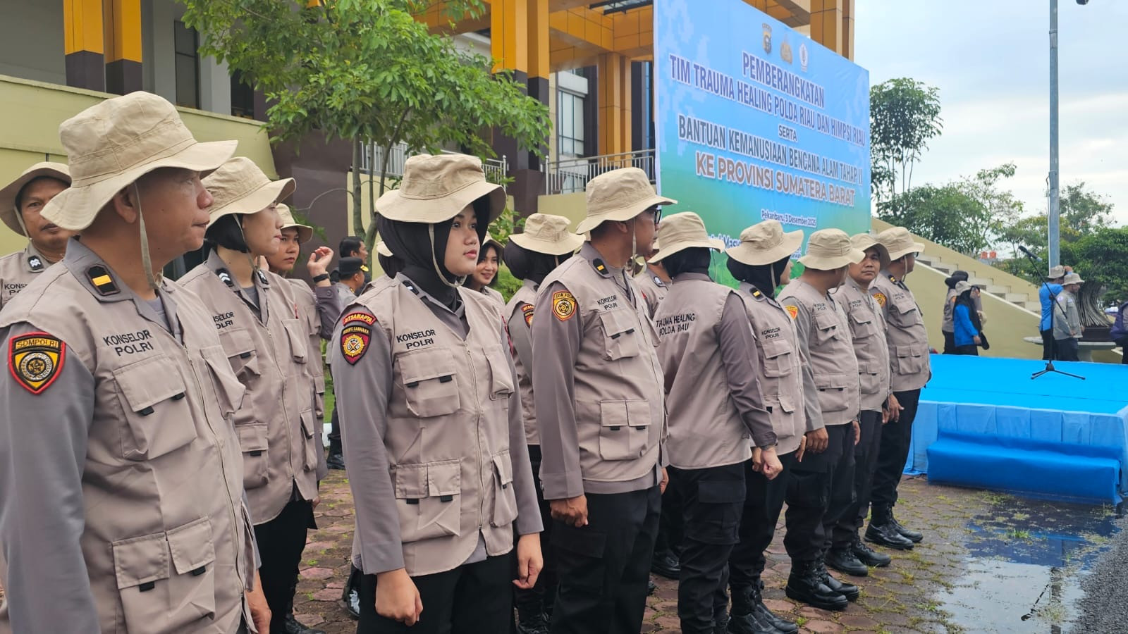 Sebanyak 42 psikolog dari Polda Riau dan Himpunan Mahasiswa Psikologi (Himpsi) diberangkatkan menuju lokasi terdampak, khususnya Kabupaten Agam. Pelepasan tim dilakukan di Mapolda Riau oleh Karoops Polda Riau, Kombes. Pol. Ino Harianto, S.I.K., M.M.