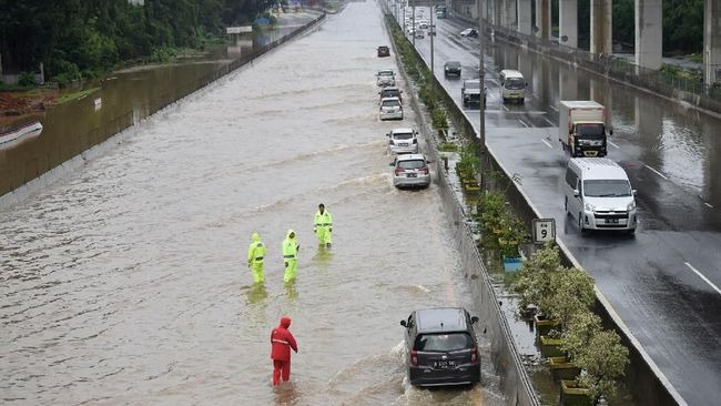 Banjir setinggi 100 cm terjadi di terowongan Exit Tol Kalimalang, lalu lintas sementara tidak bisa dilintasi kendaraan sejenis roda dua.