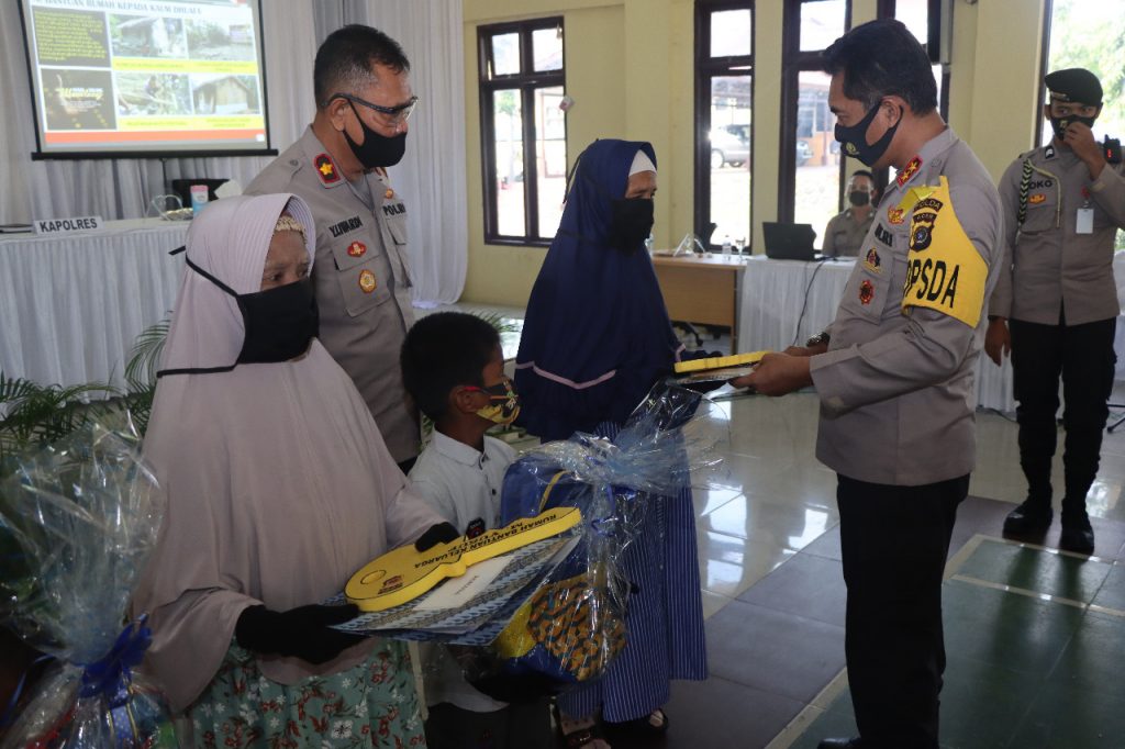Tribratanews.polri.go.id – Aceh. Kepala Kepolisian Daerah Aceh, Irjen Pol. Drs. Wahyu Widada, M. Phil, saat melakukan kunjungan kerja ke Polres Aceh Tamiang, menyerahkan dua unit rumah bantuan untuk 2 keluarga kurang mampu di Aceh Tamiang, Jumat (24/07/2020).