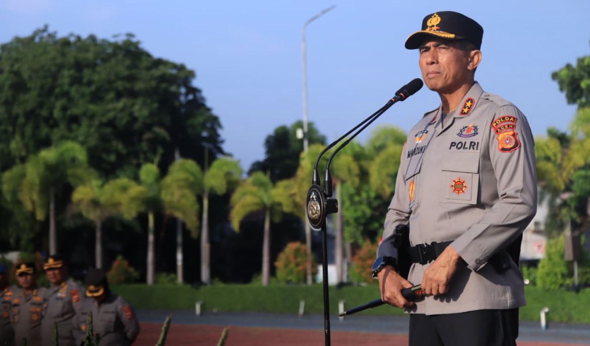 Tribratanews.polri.go.id - Banda Aceh. Kapolda Aceh, Irjen Pol. Drs. Marzuki Ali Basyah, M.M., memimpin apel pagi dan memaparkan kondisi bencana banjir yang melanda sejumlah wilayah di Provinsi Aceh. Sedikitnya 18 Kabupaten/Kota terdampak banjir dengan tingkat keparahan yang berbeda-beda, di mana Kabupaten Aceh Tamiang menjadi wilayah paling parah dan dinilai dalam kondisi yang sangat memprihatinkan. Sabtu, (6/12/25).