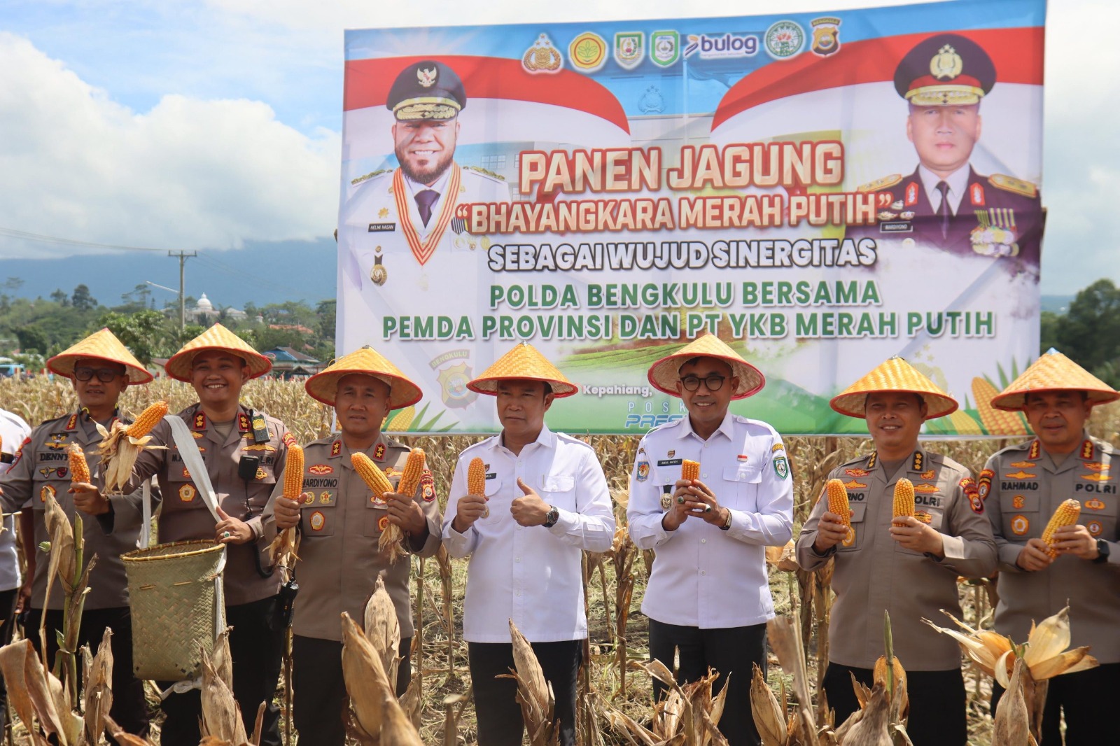 Kapolda Bengkulu Panen Jagung Bhayangkara Merah Putih, Sebagai Wujud Sinergitas Polda Bengkulu bersama Pemda Provinsi Bengkulu dan PT YKB Merah Putih