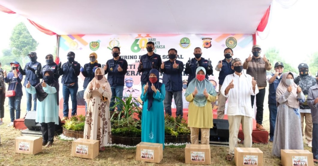 Dalam kegiatan Bakti sosial ini seluruh unsur Fokompimda memberikan sembako kepada masyarakat yang kurang mampu dan terdampak pandemi Covid-19, Sebanyak 1000 paket sembako telah disiapkan yang dibagai ke setiap lokasi.