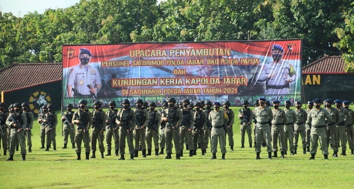 Tribratanews.polri.go.id- Bandung. Kapolda Jabar, Irjen Pol Drs. H. Ahmad Dofiri dalam upacara penyambutan personel Sat Brimob Polda Jabar yang telah kembali dari BKO Polda Papua mengaku bangga kepada seluruh anggota Jajaran Sat Brimob Jawa Barat, terutama kepada yang sudah melaksanakan BKO selama 8 bulan, sampai bulan Februari 2021.