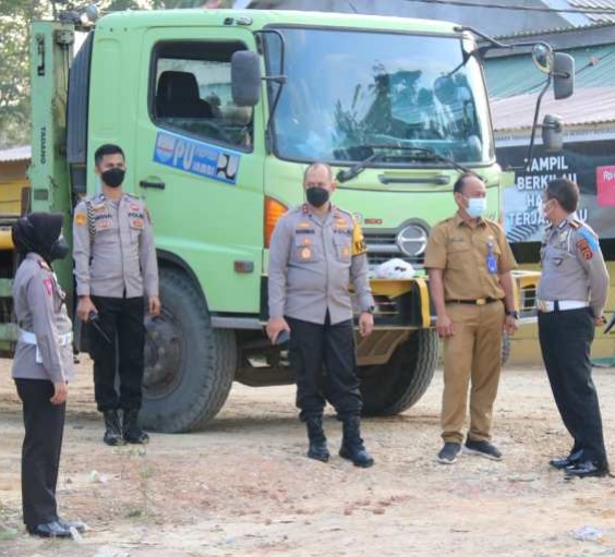 "Kapolda mengapresiasi Dinas PUPR Provinsi Jambi yang konsisten bekerja bahkan pada hari Minggu, 2 truk pengangkut material sempat terlihat masih bekerja dan beberapa alat berat meratakan jalan," jelas Kabid Humas Polda Jambi Kombes. Pol. Mulia Prianto.