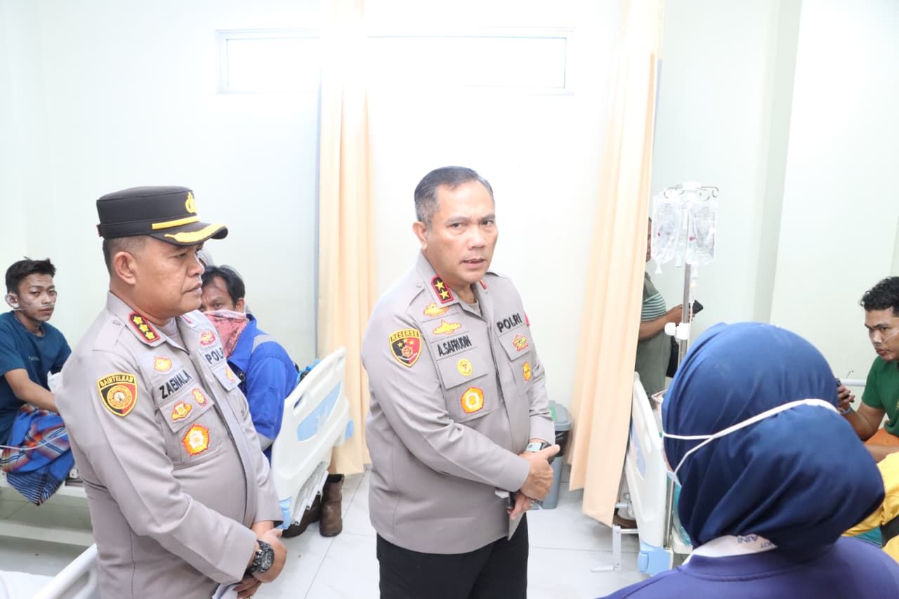 Tribratanews.polri.go.id - Batam. Kapolda Kepulauan Riau Irjen Pol. Asep Safrudin, S.I.K., M.H., bersama pejabat utama Polda Kepri dan Kapolresta Barelang menjenguk para korban kebakaran kapal Federal II Tanjung Uncang di rumah sakit. Kapolda pun menyampaikan rasa duka cita mendalam dan menegaskan bahwa Polda Kepri akan mengusut kasus ini secara profesional dan transparan.