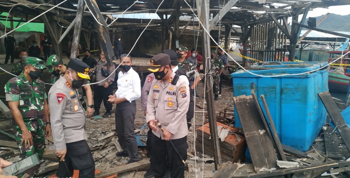 Tribratanews.Polri.go.id - Sibolga. Kepala Kepolisian Daerah Sumatera Utara Irjen. Pol. Drs. R.Z. Panca Putra Simanjuntak, M.Si., meninjau langsung lokasi bom ikan yang terjadi di Jalan KH Ahmad Dahlan, Kelurahan Pancuran Bambu, Kota Sibolga, Senin (24/1/2022).