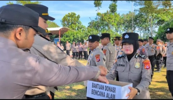 “Sebagai bentuk kepedulian kita, setelah pelaksanaan apel kita laksanakan donasi untuk saudara-saudara kita di Aceh, Sumut, dan Sumbar yang sedang mengalami musibah. Semoga bantuan ini bisa meringankan beban mereka,” ujar Kapolres.