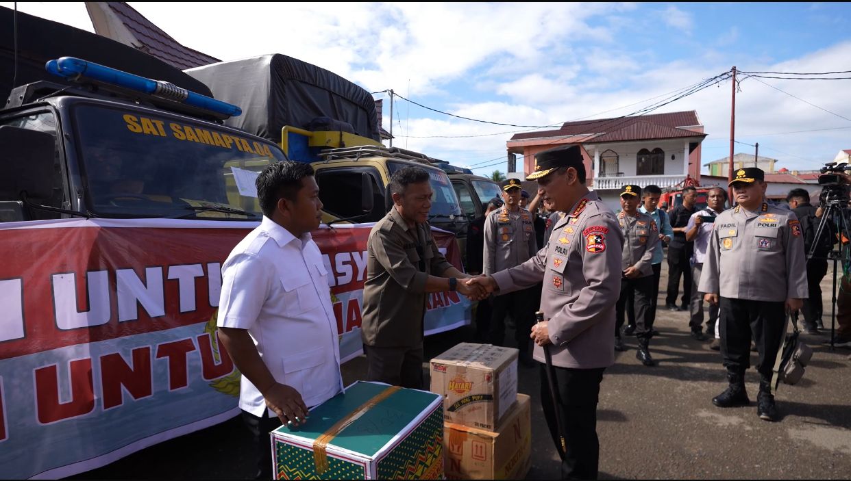 Sebagai bentuk kehadiran negara, Kapolri juga menyerahkan secara simbolik delapan truk bantuan ‘Polri untuk Masyarakat’ yang berisi bahan makanan, pakaian dan kebutuhan sehari-hari kepada Bupati Tapanuli Tengah, Masinton Pasaribu. Bantuan tersebut langsung didistribusikan ke posko pengungsian warga terdampak banjir di GOR Pandan, Tapanuli Tengah.