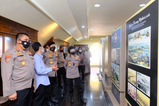 Tribratanews.polri.go.id- Makassar. Kabid Humas Polda Sulsel Kombes Pol E. Zulpan mendampingi tim dari Pusjarah Mabes Polri mengunjungi Benteng Fort Rotterdam, Meseum La Galigo, dan Makam Pangeran Diponegoro, serta beberapa lokasi sejarah lain pada, Senin 02 Agustus 2021.