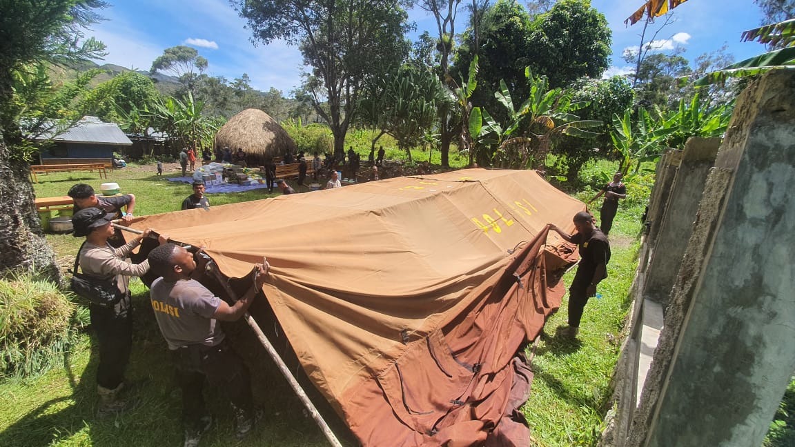 Personel diterjunkan ke Distrik Asotipo, Kabupaten Jayawijaya, untuk melaksanakan kegiatan bantuan berupa pemasangan tenda darurat bagi warga Kampung Asotipo yang terdampak bencana longsor.