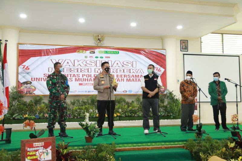 Tribratanews.polri.go.id- Mataram. Polda Nusa Tenggara Barat (NTB) menggelar vaksinasi Presisi Merdeka Goes to Campus di Universitas Muhammadiyah Mataram, sebagai upaya akselerasi Herd Immunity 70 persen di Hari Kemerdekaan ke-76 RI.