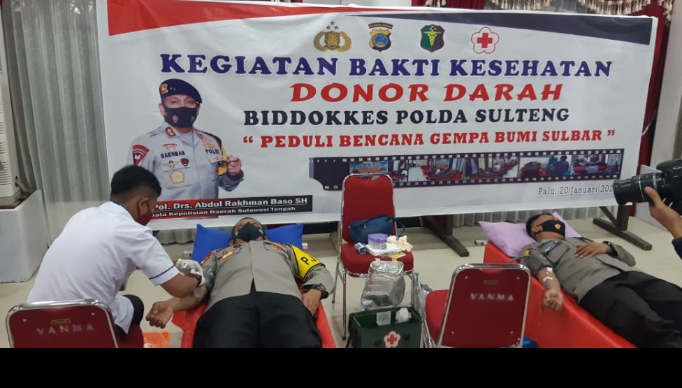Tribratanews.polri.go.id - Palu, Polda Sulteng Melalui bidokkes bekerja sama dengan PMI Provinsi Sulteng menggelar Kegiatan Donor Darah.(20/21)