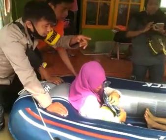 Sementara di lokasi lain, polisi juga bergerak cepat mengevakuasi seorang ibu yang baru melahirkan beserta bayinya di Desa Semangat Bakti, Kecamatan Alalak. Bhabinkamtibmas Sungai Lumbah, Polsek Berangas Brigadir Suryadi bersama PMI dan relawan membawa ibu dan bayinya ke tempat yang lebih aman menggunakan perahu karet.