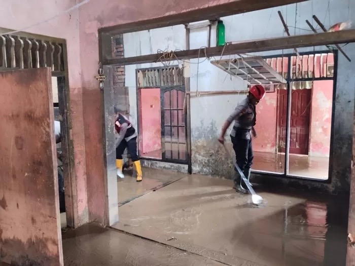 Salah satunya dengan melakukan pembersihan rumah warga yang dimasuki lumpur pascabencana galodo melanda.