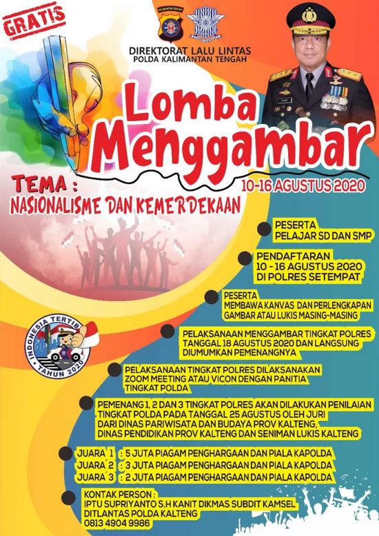 Tribratanews.polri.go.id - Palangkaraya. Dalam rangka menyambut HUT RI ke-75, Polda Kalteng melalui Dirlantas Polda Kalteng menggelar lomba menggambar yang ditujukan kepada pelajar SD dan SMP.