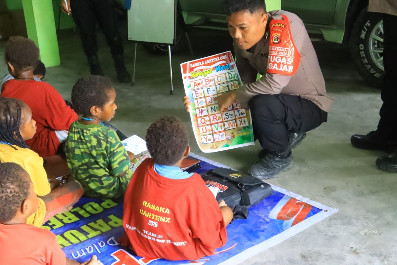 Tribratanews.polri.go.id - Elelim. Upaya mencerdaskan generasi muda di Kabupaten Yalimo terus dilakukan melalui berbagai program edukasi yang digagas oleh Subsatgas Si-Ipar dalam Operasi Rasaka Cartenz 2025. Rabu (3/12/25)