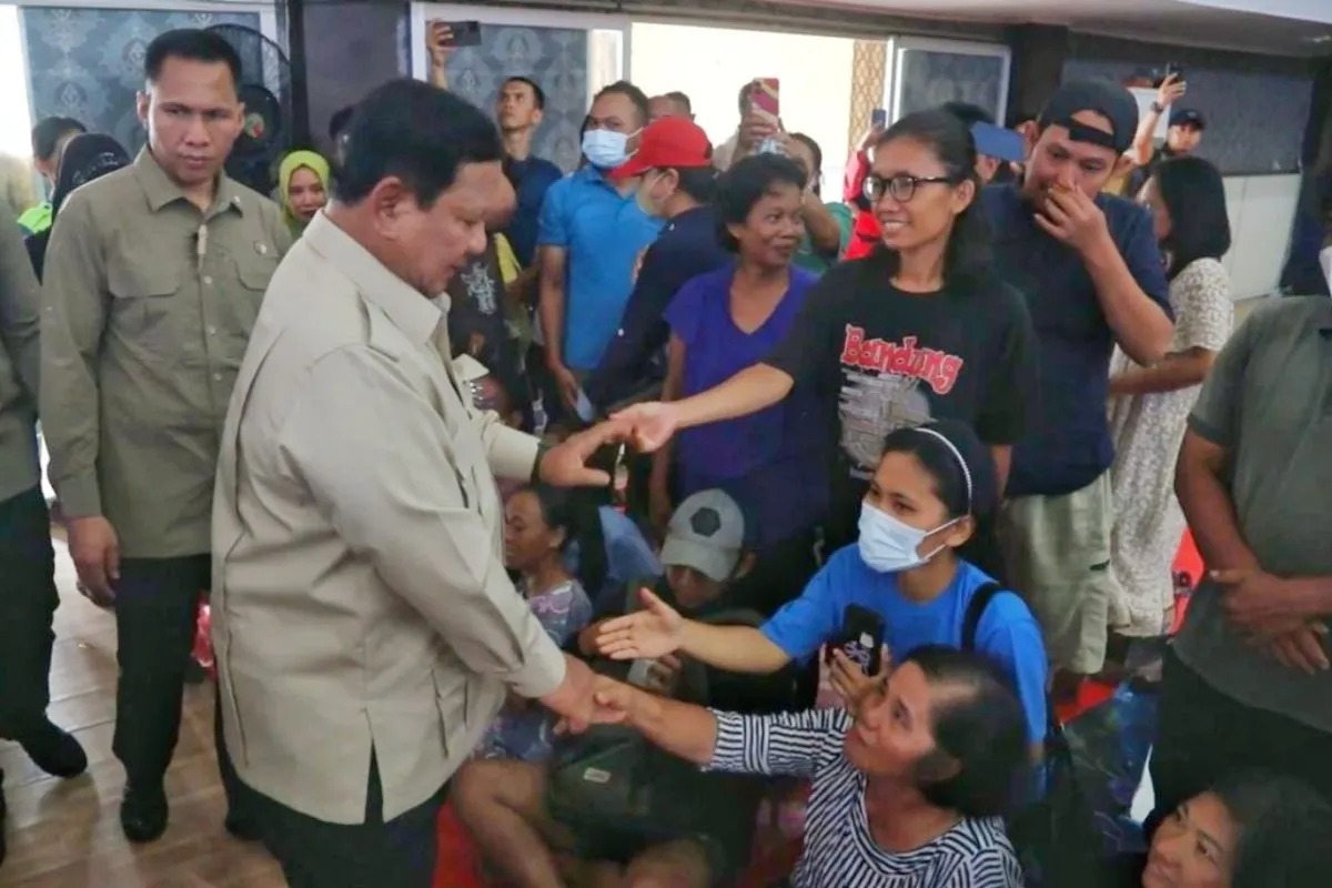 Setibanya di lokasi, Presiden Prabowo langsung mengecek kondisi dapur lapangan TNI-Polri yang sedang memasak berbagai menu makanan untuk para warga yang mengungsi.