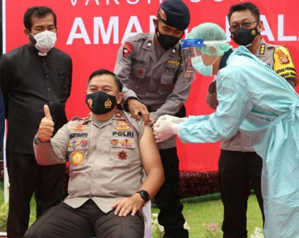 Tribratanews.polri.go.id - Balikpapan. Wakapolda Kaltim, Brigjen Pol Drs. Hariyanto, S.H., M.Hum., menjadi orang pertama di Kota Balikpapan yang menerima suntikan vaksin sinovac. Vaksinasi simbolis dilakukan di Kantor Walikota Balikpapan bersama sejumlah Forkopimda dan Tokoh Masyarakat. Sebelum vaksin disuntikkan, Kapolda beserta sejumlah Forkopimda telah menjalani beberapa tahap pemeriksaan kesehatan.