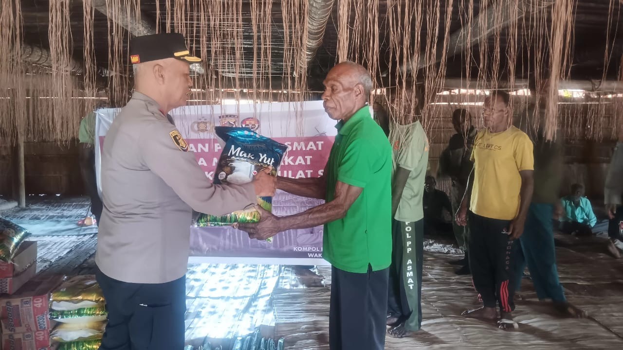 Dalam rangka menjelang pesta Ulat Sagu, Wakapolres Asmat laksanakan silaturahmi sekaligus memberikan bantuan sembako kepada masyarakat Kampung Waw Cesaw.