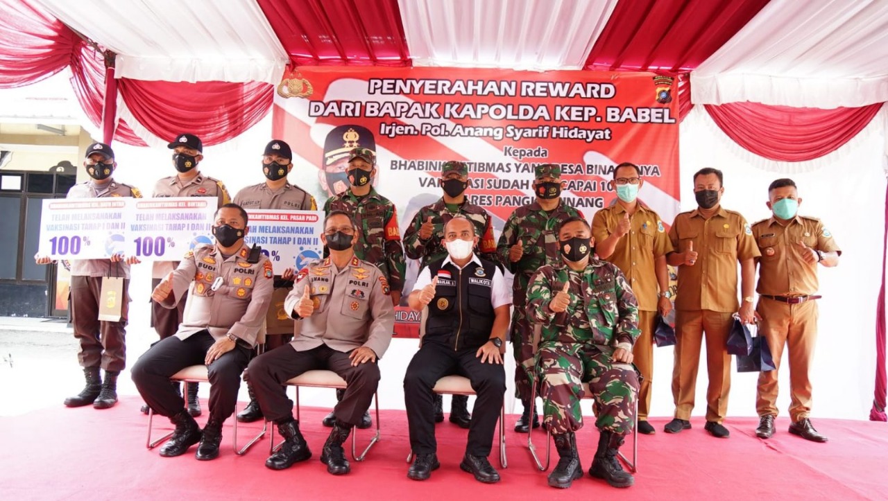 "We awarded the subdistricts with a 100% vaccination rate. The award itself is not worthy of their hard work of subdistrict office and Community Army and Police Unit for the last one year in helping and motivated people during the Covid-19 pandemic", Chief of Bangka Belitung Islands Regional Police said.