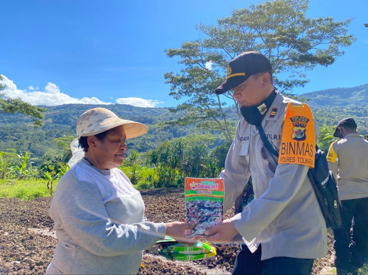 The farming group is the attention of the Noken Community Development Unit (Binmas Noken) of Tolikara. Under the leadership of Police Inspector 1st Class Widada and his six members: Police Brigadier Petrus Hamokwarong, Police Brigadier 1st Class Yordan P Bonay, Police Chief Brigadier Esau Wenda, Police Chief Brigadier Rambo D Womsiwor, Police Brigadier 1st Class Pilipus Samtai, Police Brigadier 2nd Class Derek Letlora, conducted KASUARI programme (Welfare for the Nation) on Monday, October 18, 2021, at 09.00 at Ampera village, Karubaga district, Tolikara regency.