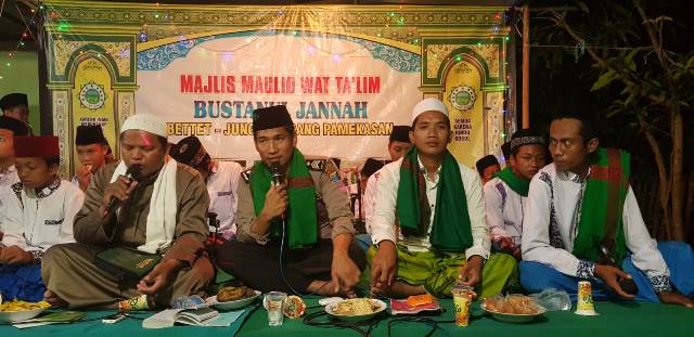 Not only that, but Police Chief Brigadier Sutrisno also becomes the main vocalist at the Salawat forum of Riyadlul Jannah Madura. Moreover, when reciting Salawat on stage, he still wears the Police uniform.