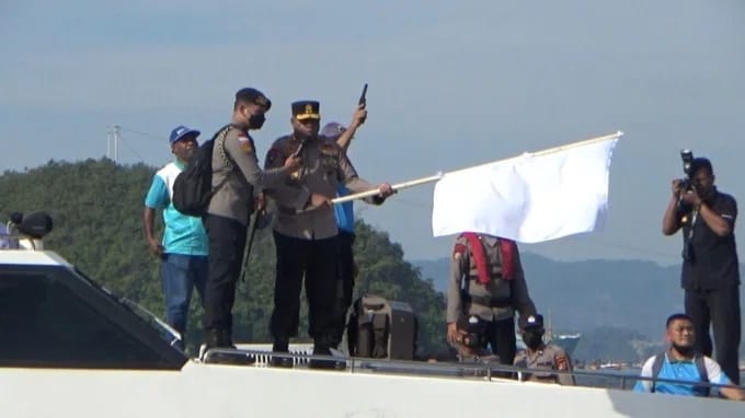 Tribratanews.polri.go.id - Jayapura. Dalam rangka menyambut Hari Bhayangkara ke-76, Polda Papua menggelar lomba dayung tradisional di Pantai Dok II Jayapura, Senin (27/6/2022). Acara dibuka langsung oleh Kapolda Papua, Irjen. Pol. Mathius D. Fakhiri didampingi pejabat utama Polda Papua.