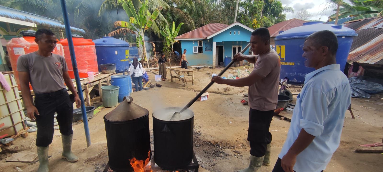 Selain itu personil juga membantu pembuatan sumur bor sedalam 6 meter yang kini telah selesai, koordinasi bersama Kepala Desa dan Dinas PU Provinsi terkait perbaikan delineasi sungai di belakang masjid serta area permukiman, menyiapkan dapur lapangan untuk mengakomodasi kebutuhan konsumsi warga.