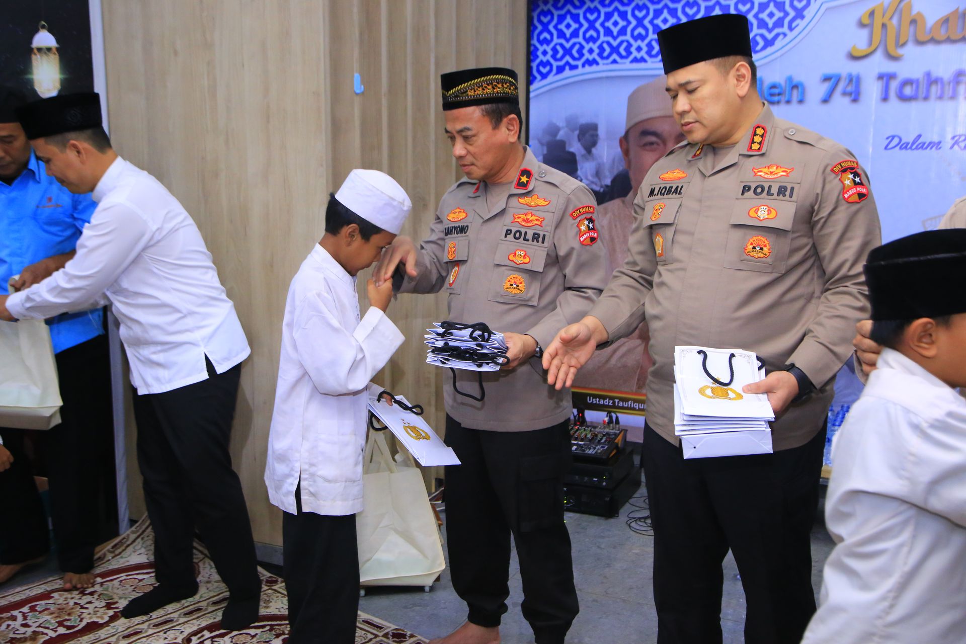 Tribratanews.polri.go.id - Jakarta. Divisi Humas Polri memberikan tali kasih kepada sejumlah anak yatim dalam rangka Hari Jadi ke-74. Kegiatan ini diselenggarakan usai khataman Al-Qur’an yang melibatkan 74 orang Tahfiz Quran dari sejumlah pesantren beserta personel anggota Divhumas Polri.